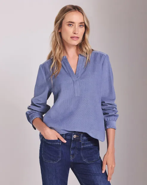 Leo blouse met gespleten hals